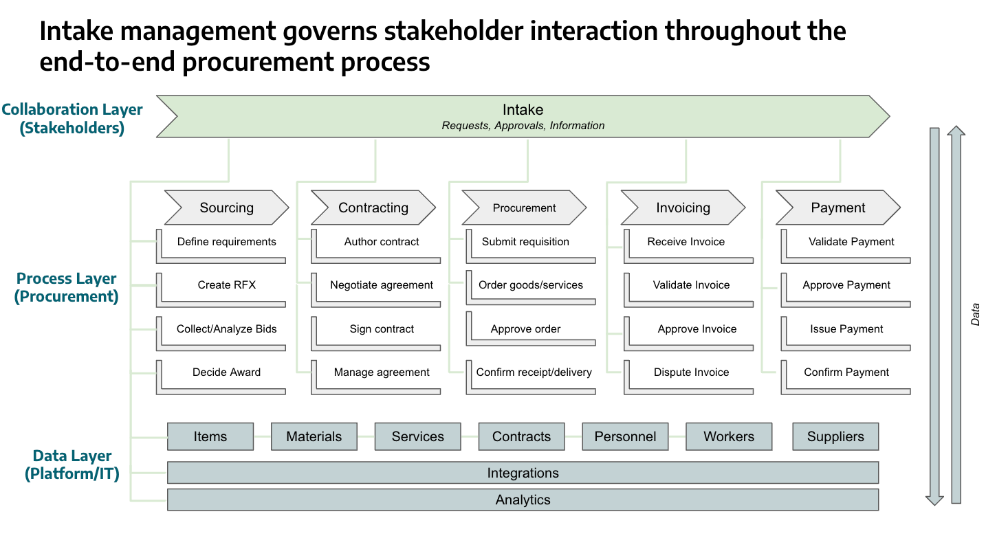 To be sure, the collaboration gap between procurement and the rest of the business can’t be solved overnight. But there is a clear path forward: that fragmented tech stack needs to begin to be unified, and figuring out how you’re going to realize the governance imperative — whether through intake or some other approach — is the first step in that journey.